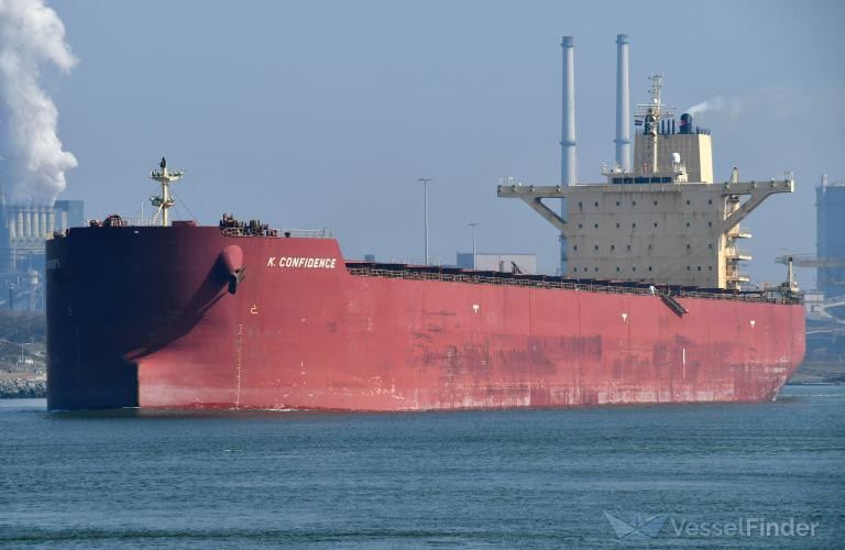 K. CONFIDENCE built in 2013 (12 years ago) is a vessel in the Bulk Carrier segment. Its IMO number is 9495416 and the current MMSI number is 373855000. The vessel has callsign 3EZT5. Summer deadweight is 181488 and gross tonnage 93850. Her current width is reported to be 45 meters. Her length overall (LOA) is 292 meters. Latest reported draught is 17.8 meters. K. CONFIDENCE is sailing under the flag of Panama.